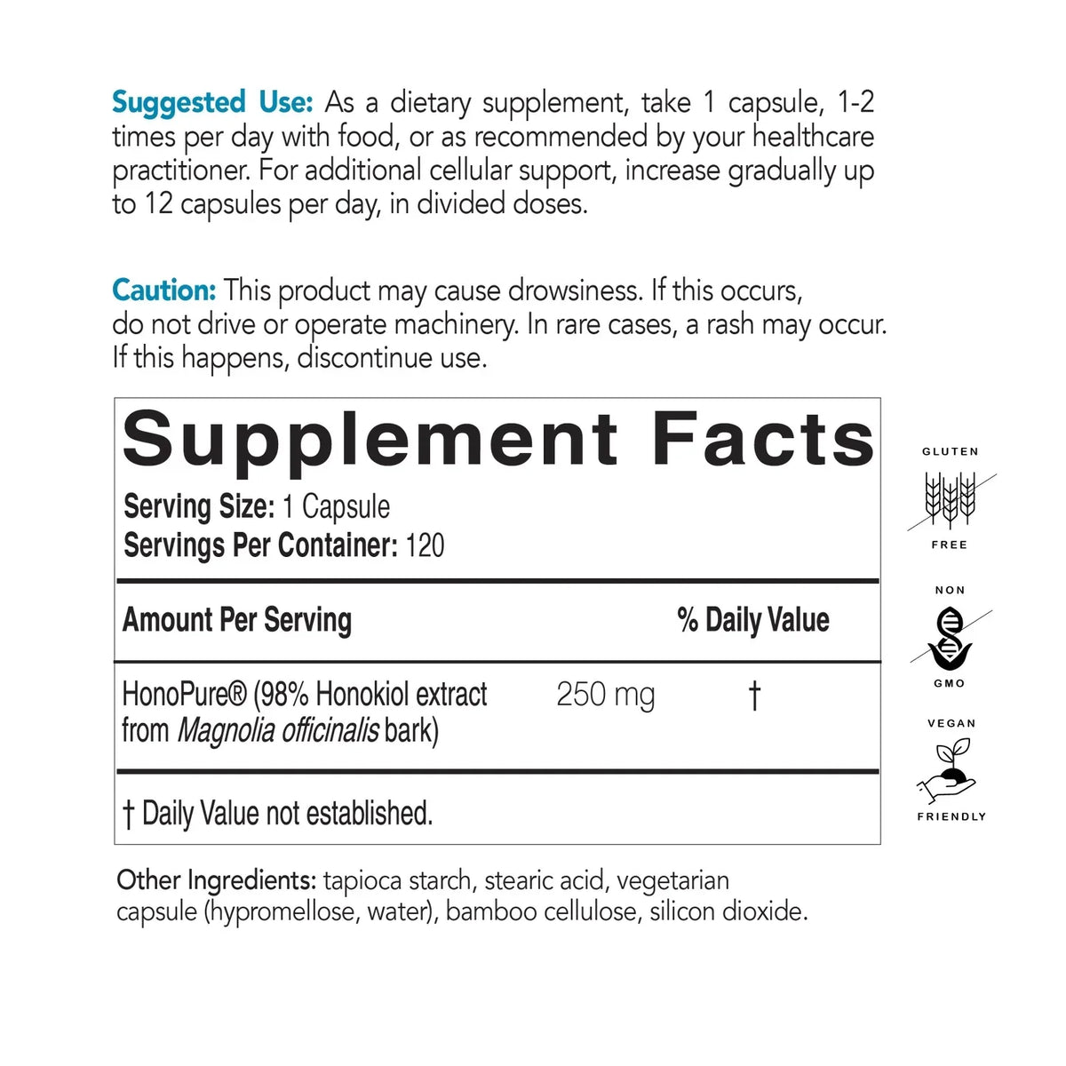 HonoPure is 98% pure honokiol—an extensively researched, highly active extract purified from Magnolia officinalis bark. HonoPure provides a remarkable range of potent benefits including cognitive and neurological support, cellular regulation, relaxation and healthy mood, and more.*
