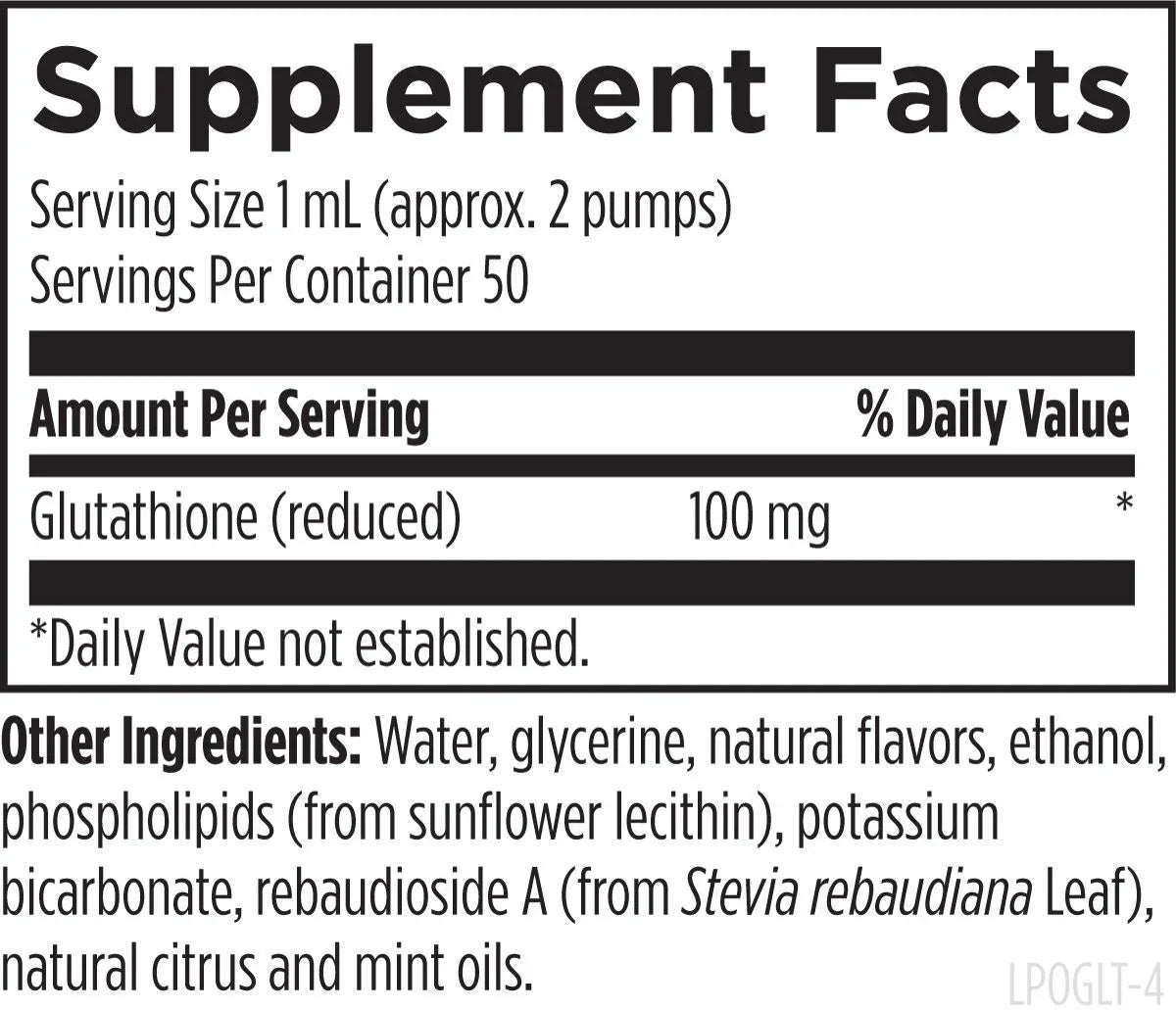 Liposomal Glutathione delivers 100 mg of reduced glutathione in a lemon-peppermint flavor per 2-pump serving. This product is formulated using liposomal technology, which results in superior delivery, absorption, and bioavailability. Liposomal delivery bypasses proteolytic degradation in the gastrointestinal (GI) tract and is uniquely effective for reaching and interacting with target tissues. Thus, this technology helps to overcome the absorption challenges typically faced with oral glutathione supplementation. Glutathione is considered the body’s “master” antioxidant. It helps protect cells against the effects of oxidative stress from dietary and environmental free radicals, and those resulting from normal metabolic processes.* Glutathione also serves as a key factor in proper detoxification.*